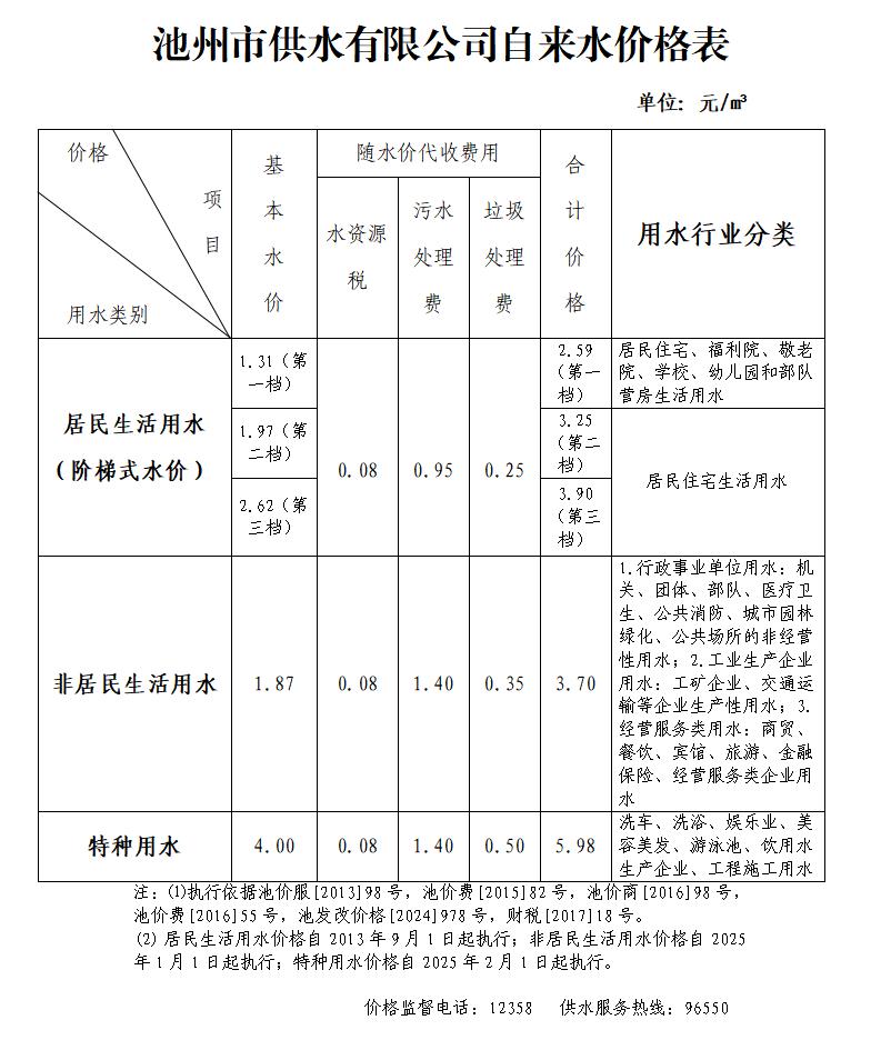 ----------------------------------------------------------------------------------- 上一篇:池州市供水有限公司收费项目清... 下一篇:池州市供水有限公司供水价格表 |