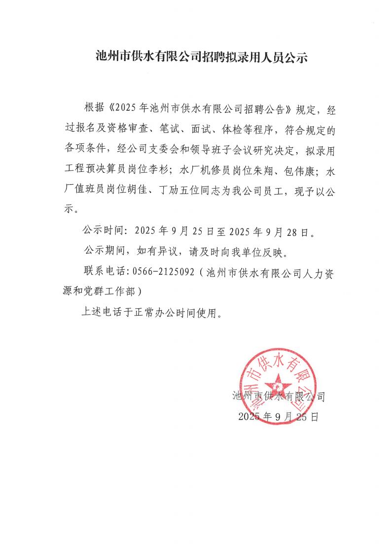----------------------------------------------------------------------------------- 上一篇:池州市供水有限公司人员招聘面... 下一篇:池州市供水有限公司关于固定资... |