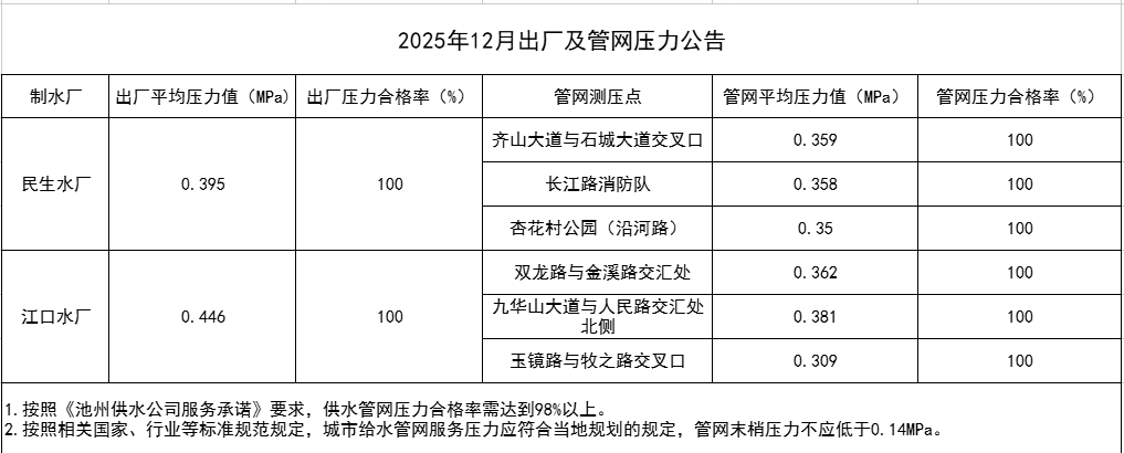 | 2025年12月出厂及管网压力公告 | |